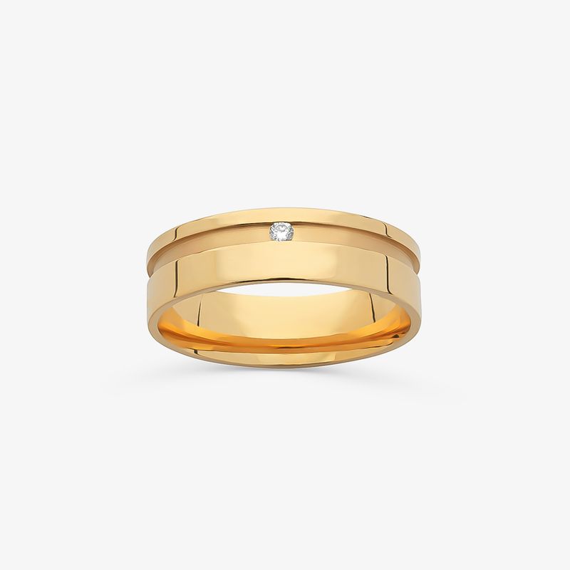 Aliança Anatômica com 2 Pontos de Diamantes com Friso em Ouro Amarelo 18k – 5,8 mm