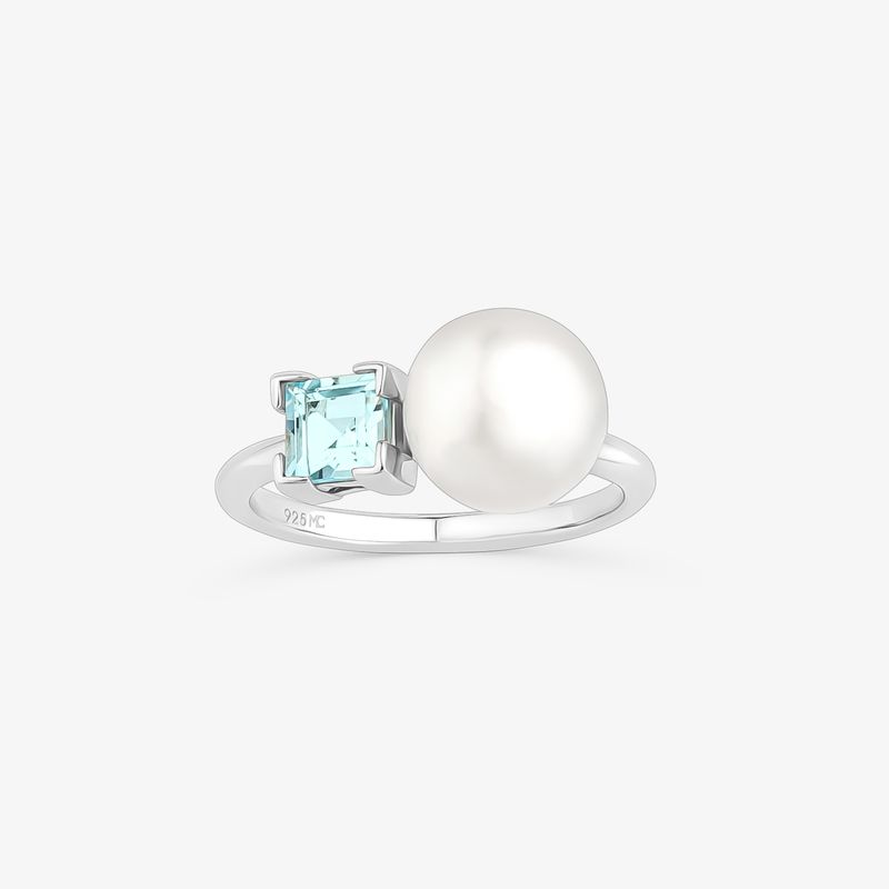 Anel com Pérola e Topázio Azul em Prata 925 18