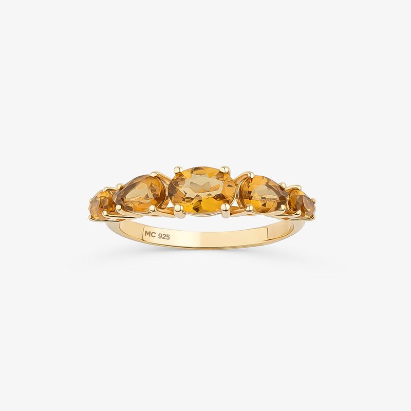 Anel com Quartzo Honey em Prata 925 com Banho de Ouro Amarelo 18k