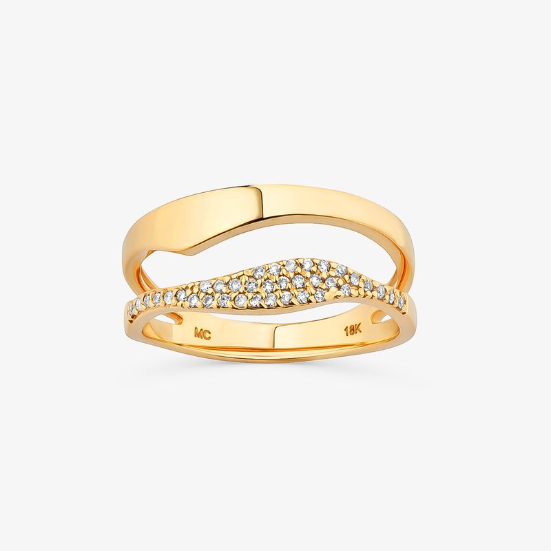Anel Curvas Duplo com Diamante em Ouro Amarelo 18k 16