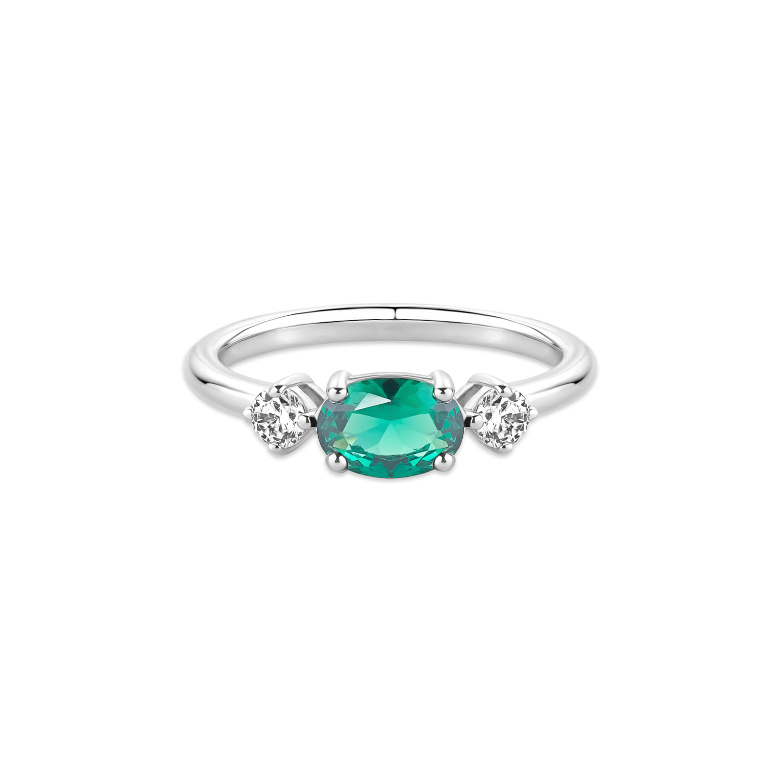 Anel Life Lotus em Prata 925 com Pedras Verdes e Incolores
