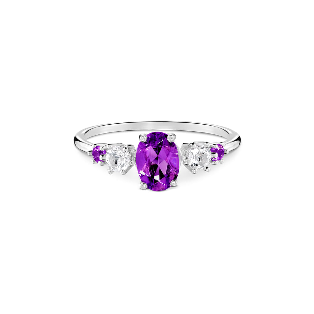 Anel Marine em Prata 925 com Ametistas Roxa e Topázios Incolores