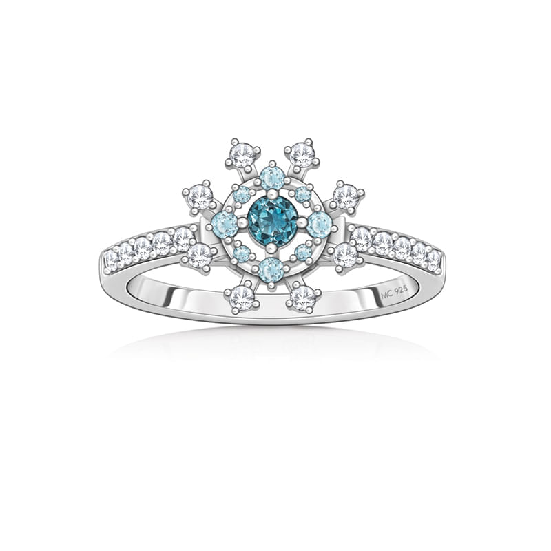 Anel Maxi Explosão Degrade com Topázio , Topázio Azul e Topázio London em Prata 925