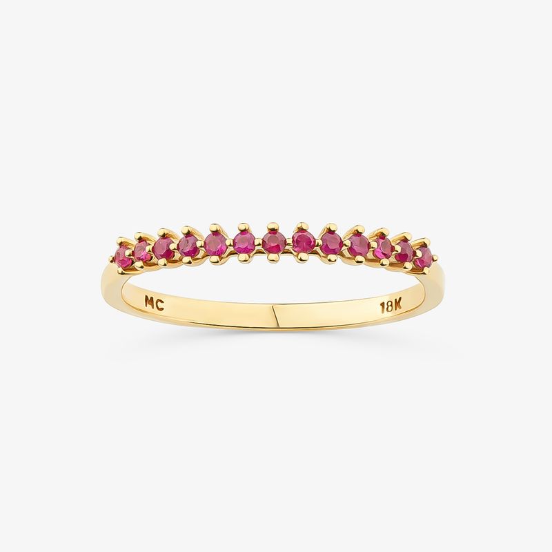 Anel Meia Aliança com Rubi em Ouro Amarelo 18k