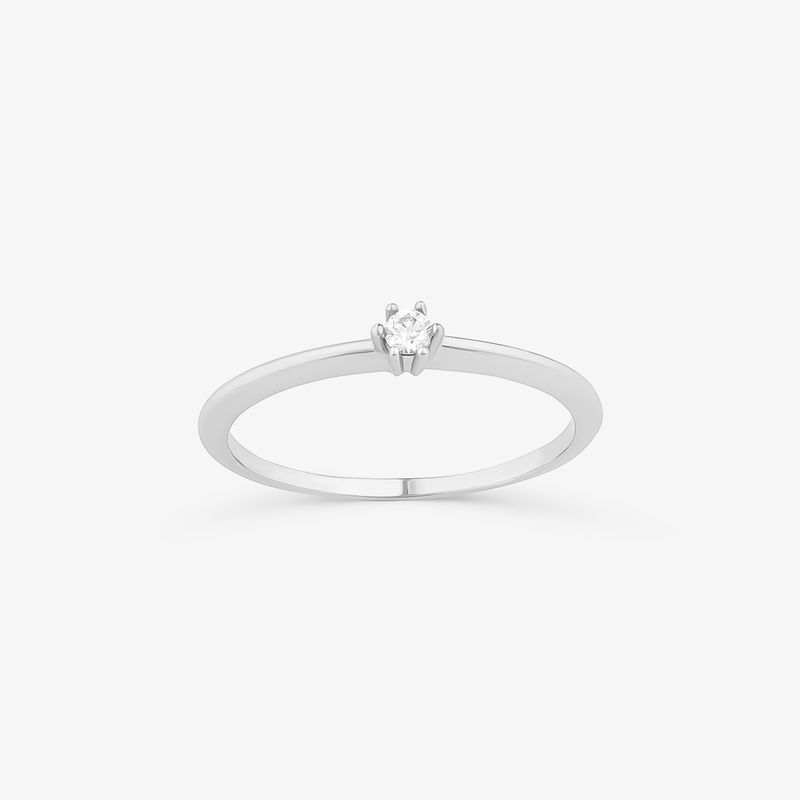 Anel Solitário com 5 Pontos de Diamantes em Ouro Branco 18k