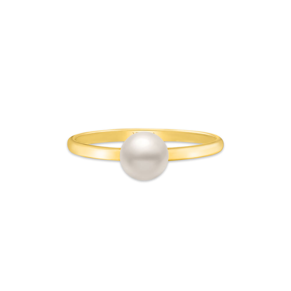 Anel Solitário em Ouro Amarelo 18k com Pérola, 5-5.5mm