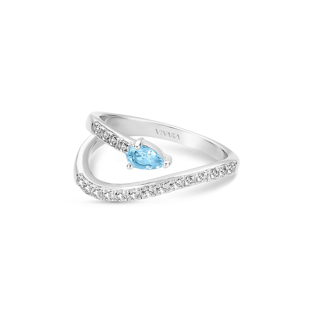 Anel Wave em Prata 925 com Topázio Azul e Topázios Incolores