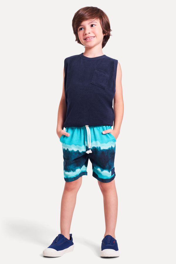 Bermuda da linha infantil Reserva Mini. O modelo em algodão misto possui cós de elástico, dois bolsos na frente e bolsos five pockets nas costas. Ganhou ainda ilhóses e cadarço com detalhe de linha contrastante na ponta. A estampa é a cara do verão! Produzido eticamente no Brasil. Comprando esta peça, você viabiliza cinco pratos de comida através do nosso programa 1P5P.