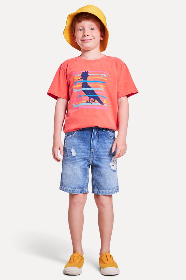 Bermuda da linha infantil Reserva Mini. Em jeans, possui lavagem média com rasgos e detalhes desgastados. Tem ainda três bolsos na frente, incluindo bolso celular e dois bolsos atrás. Peça coringa e moderna, que combina com tudo! Produzido eticamente no Brasil. Comprando esta peça, você complementa cinco pratos de comida através do nosso programa 1P=5P.