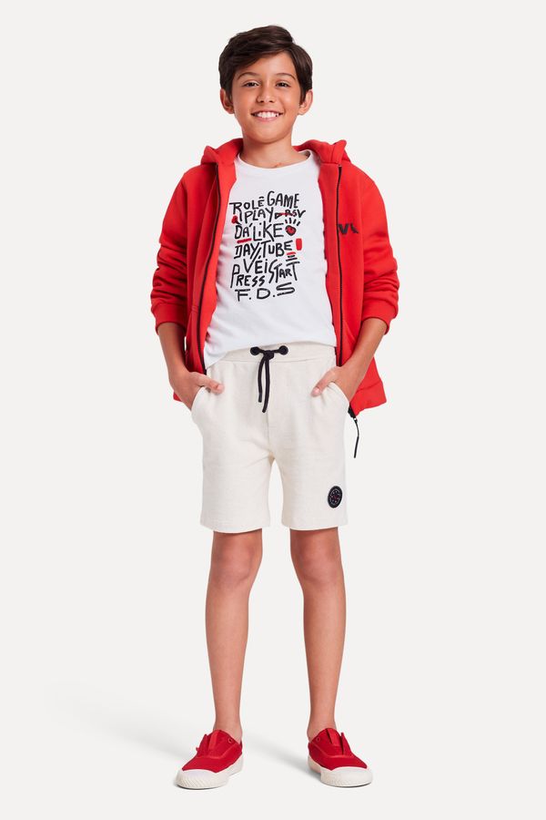 Bermuda da linha infantil Reserva Mini. O modelo em moletom possui leve textura que dá um ar moderninho aos visuais. Ganhou cadarço que ajusta a cintura e vai com tudo! Produzido eticamente no Brasil. Comprando esta peça, você complementa cinco pratos de comida através do nosso programa 1P=5P.