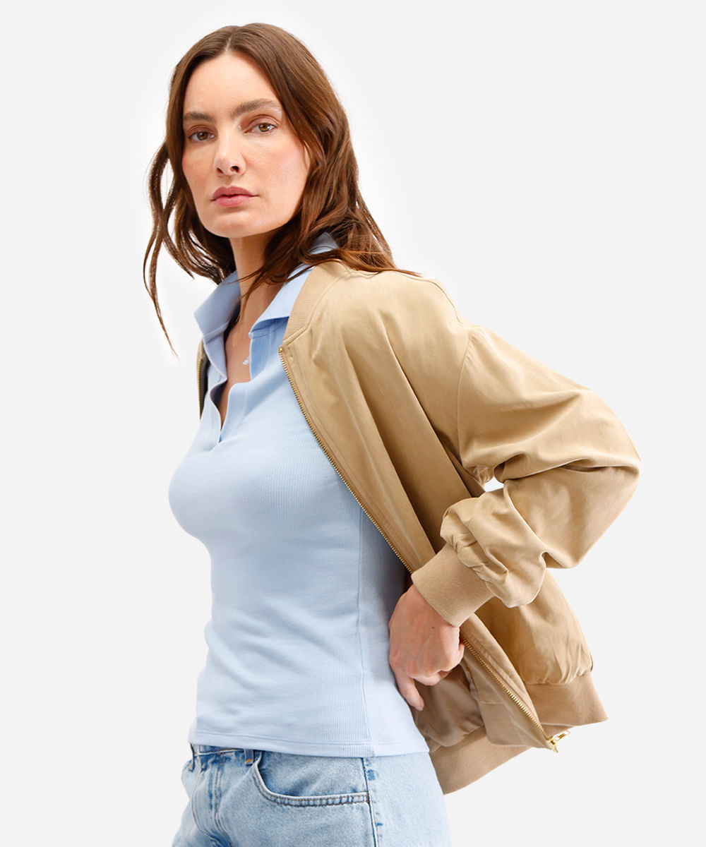 polo feminina de algodão manga curta azul