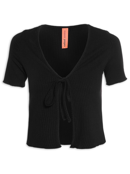 Blusa Feminina Canelada - Off White Blusa Feminina Canelada, Colcci.A blusa off white é confeccionada em malha canelada. A peça possui decote V, mangas curtas, abertura na parte frontal, tag metálica da marca aplicada na parte posterior, shape solto, caimento reto e acabamento canelado, fechamento frontal por tira de amarração.- Modelagem regular, sugerimos o tamanho padrão.- Lavar á mãoComposição: 93% Viscose, 7% ElastanoCor: Off WhiteMarca: Colcci