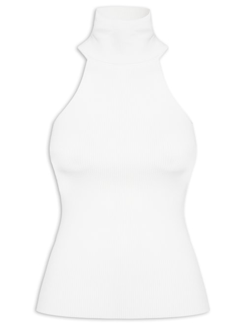 Top Gola Alta Cava Tricot - Branco