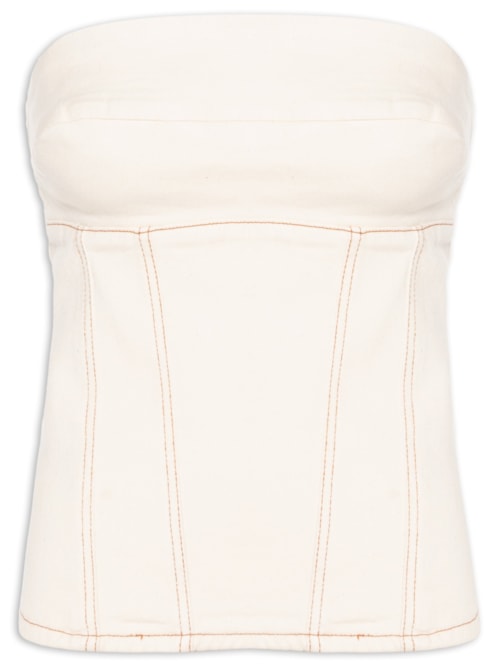 Blusa Feminina Sarja Corset sem Alça - Branco Blusa Feminina Sarja Corset sem Alça, My Favorite Things.A blusa branca é confeccionada em sarja sem elasticidade. A peça justa ao corpo de modelo tomara que caia possui decote reto, recortes frontais e posteriores pespontados, tag da marca metalizada aplicada no decote posterior e fechamento posterior por zíper.Especificações & Cuidados:Lavar à mãoComposição: 99% Algodão 1% ElastanoCor: BrancoMarca: My Favorite Things