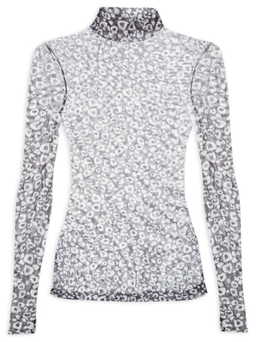 Blusa Feminina Gola Alta Tule Onça Cronos - Preto