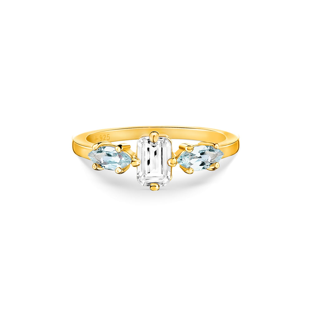 Ir Para LojaBrinco Argola Life Nature II em Prata 925 com Banho de Ouro Amarelo 18k e Topázio Sky e Incolor