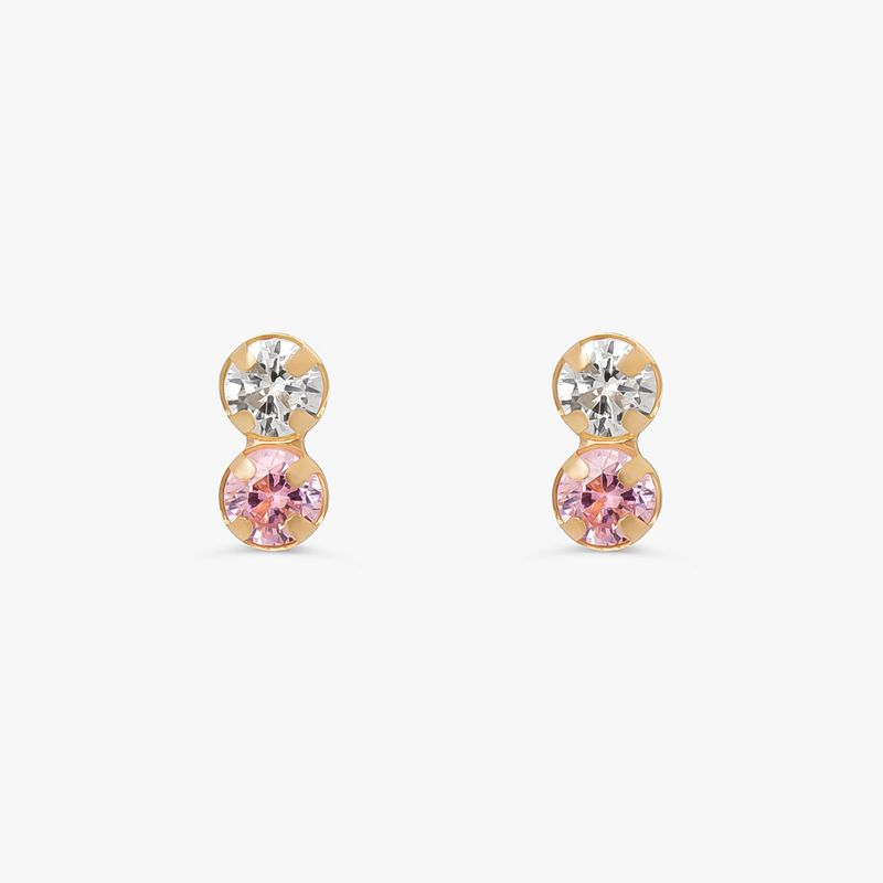 Brinco com Zircônia Lilás e Incolor em Ouro Amarelo 18k