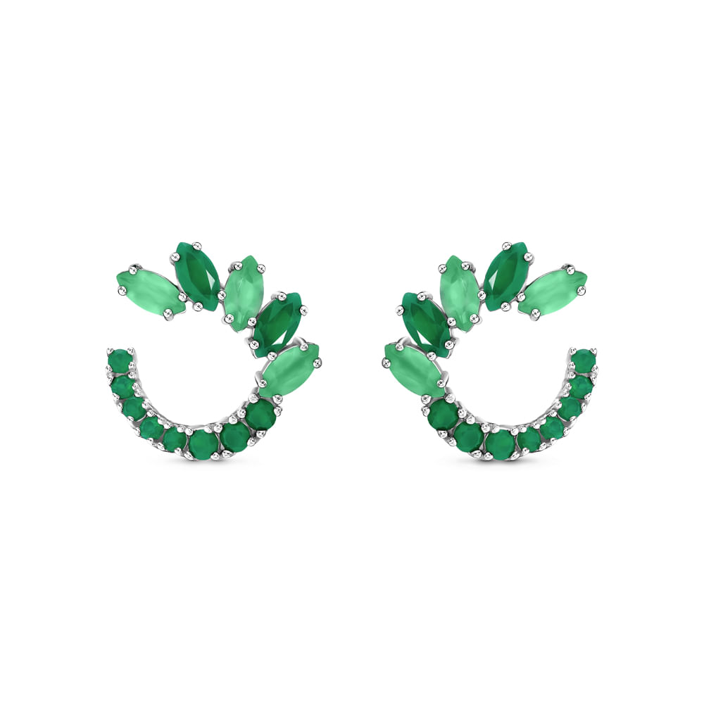Brinco Life Nature III em Prata 925 com Ágata Verde e Calcedônia Verde