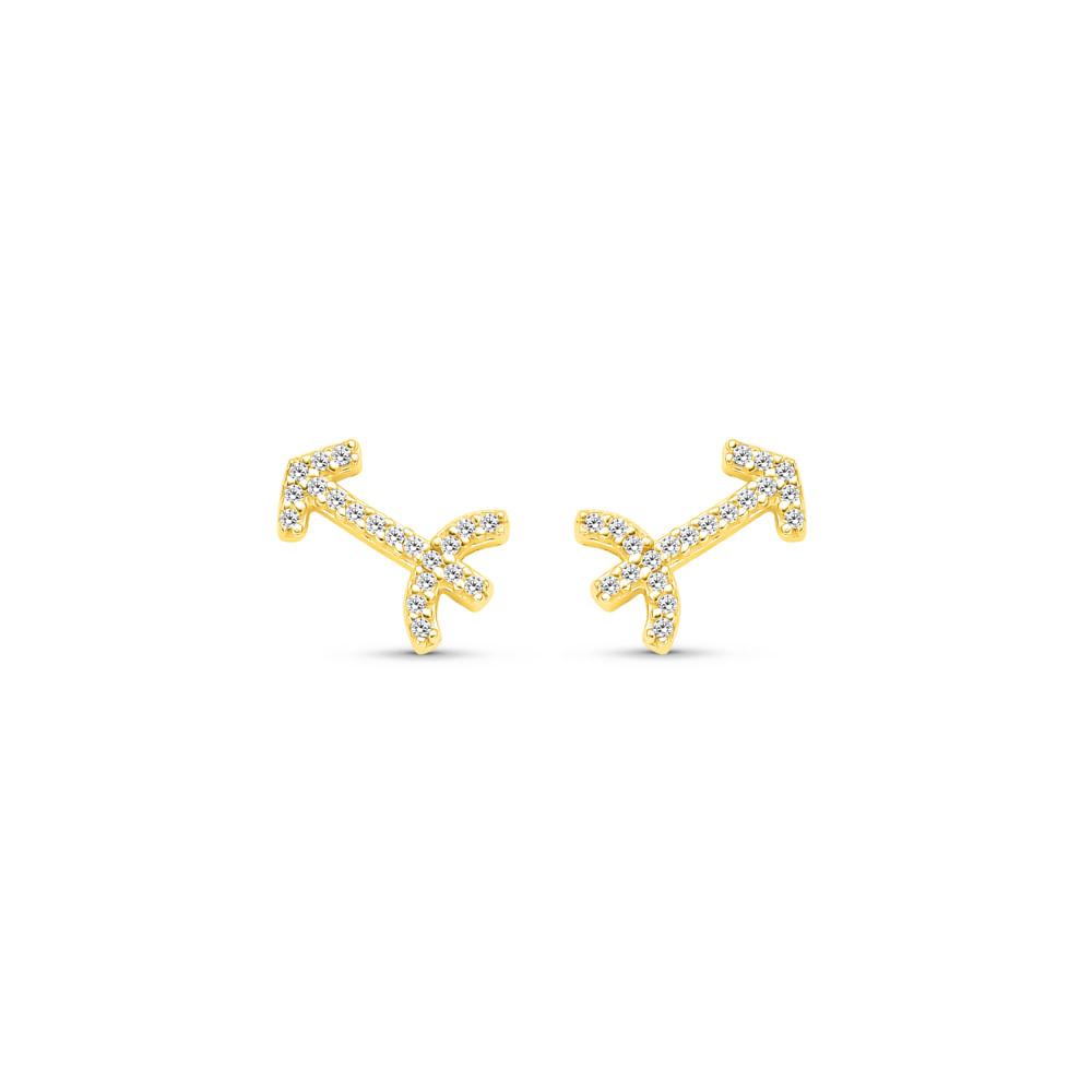 Brinco Life Signos Gêmeos Prata Banho em Ouro Amarelo Cravejado