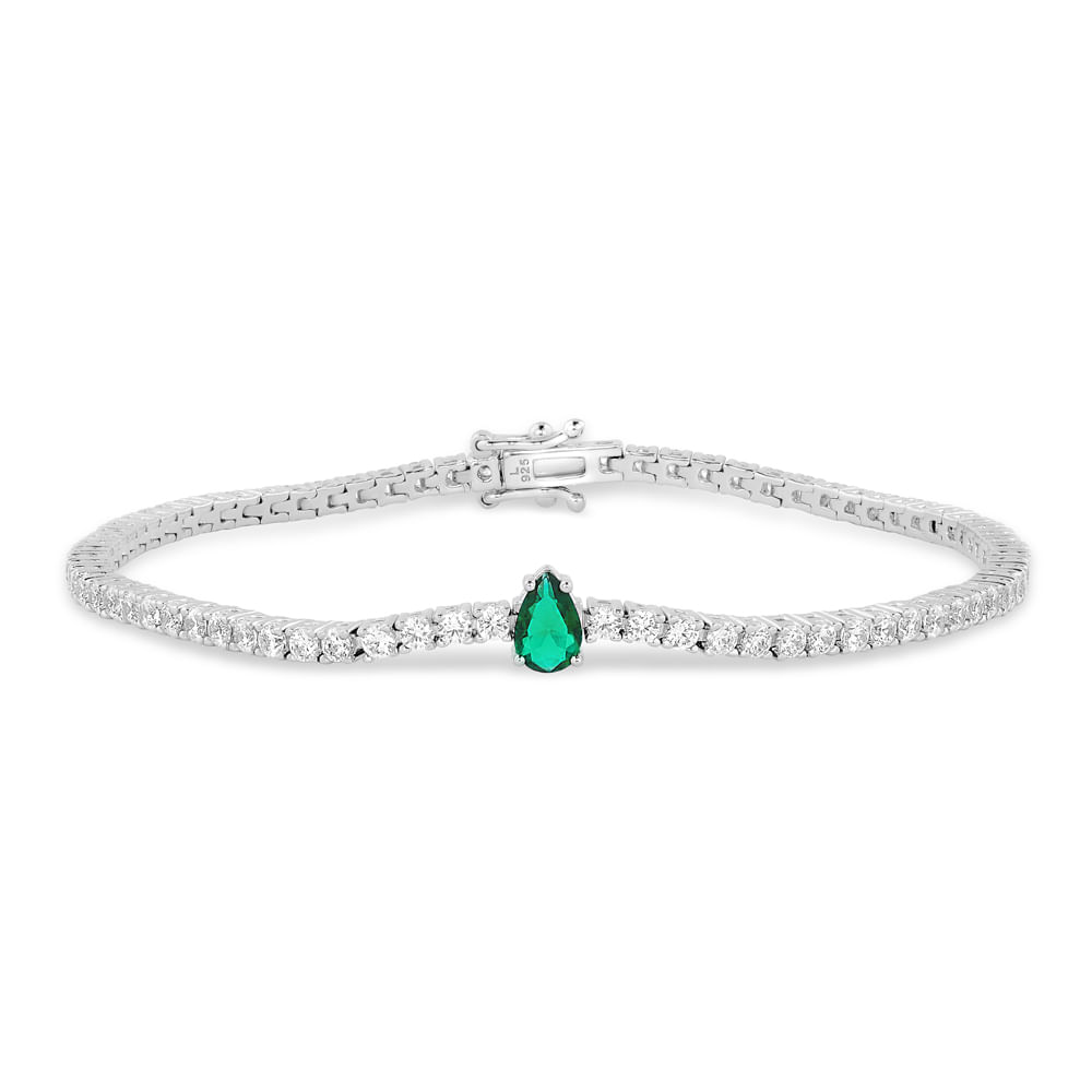 Brinco Life Special II em Prata 925 com Pedras Verdes e Incolores