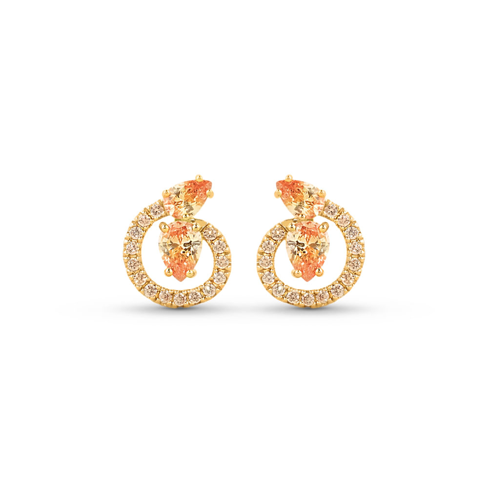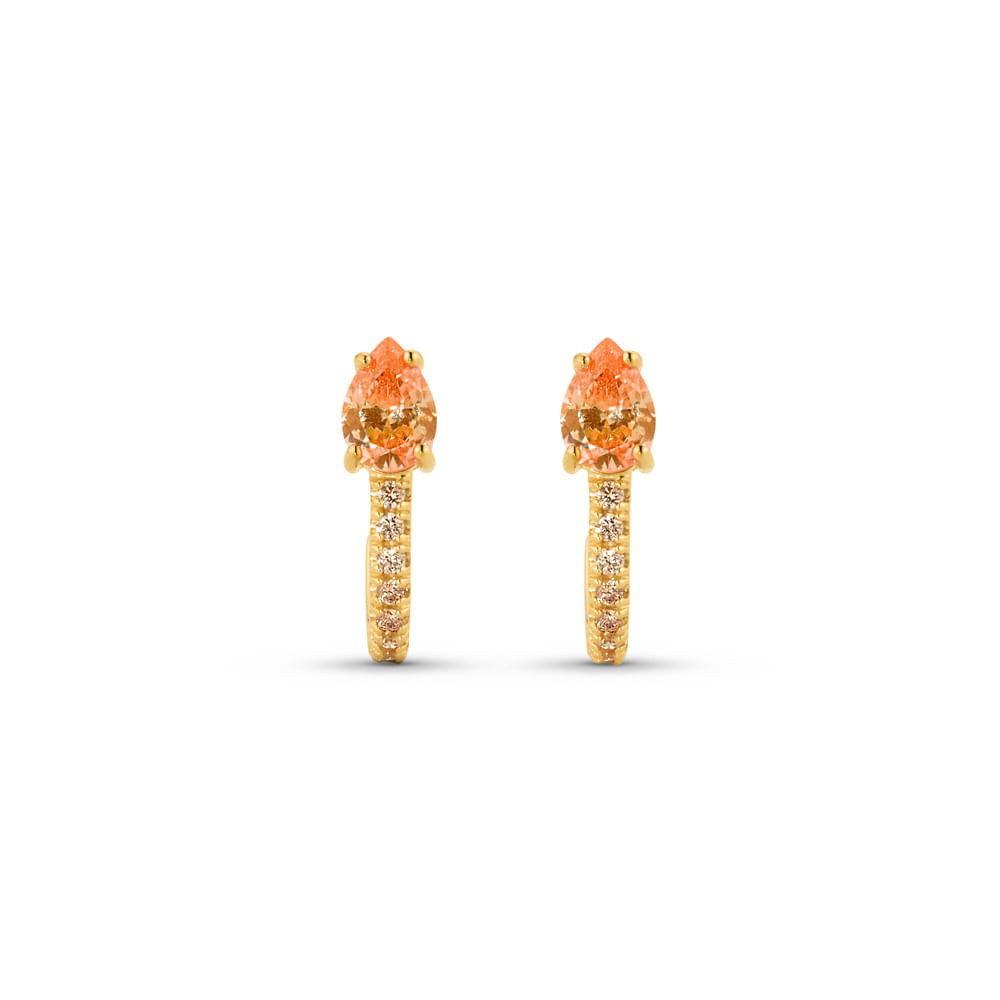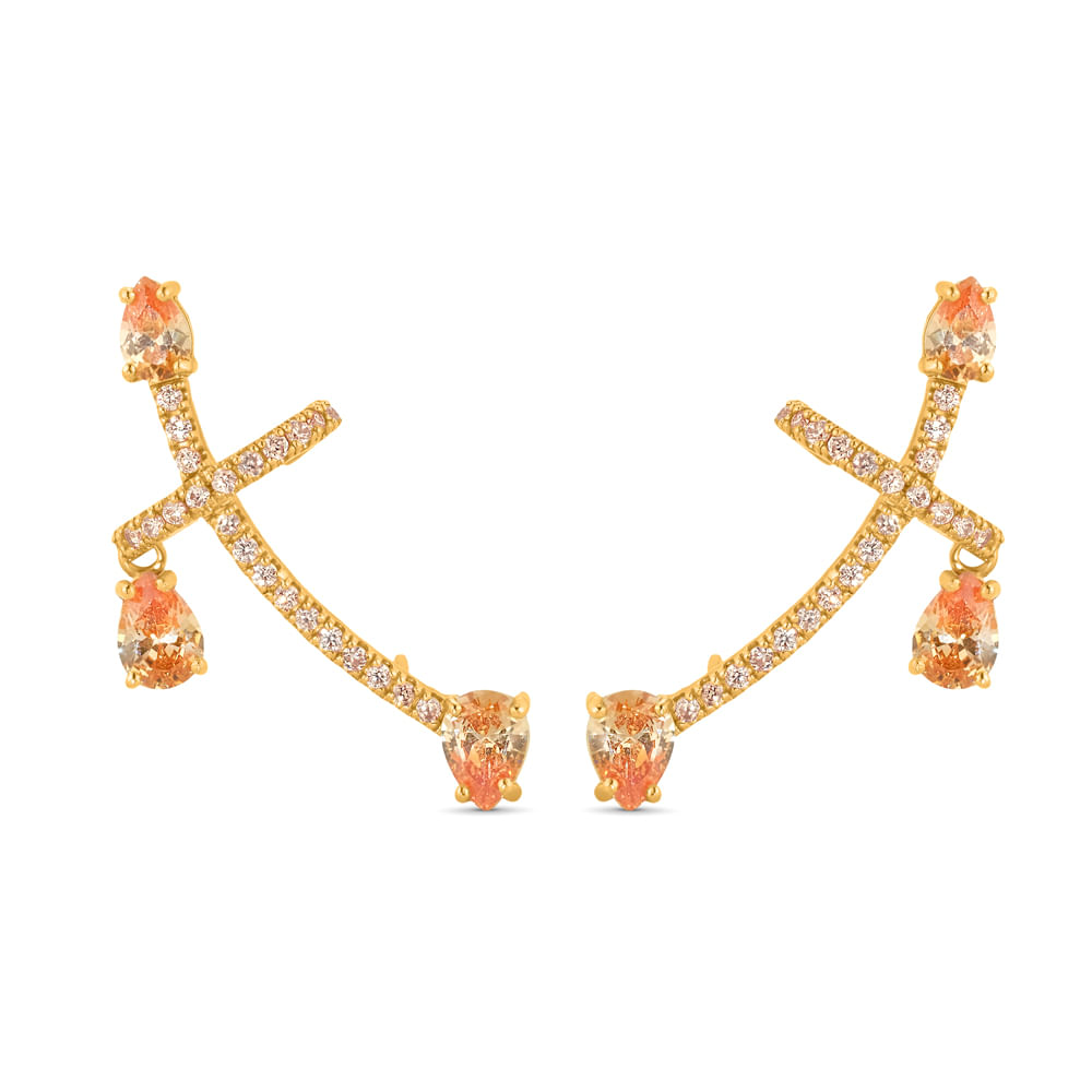 Brinco Life Sun Prata Banho Ouro Amarelo Cravejado
