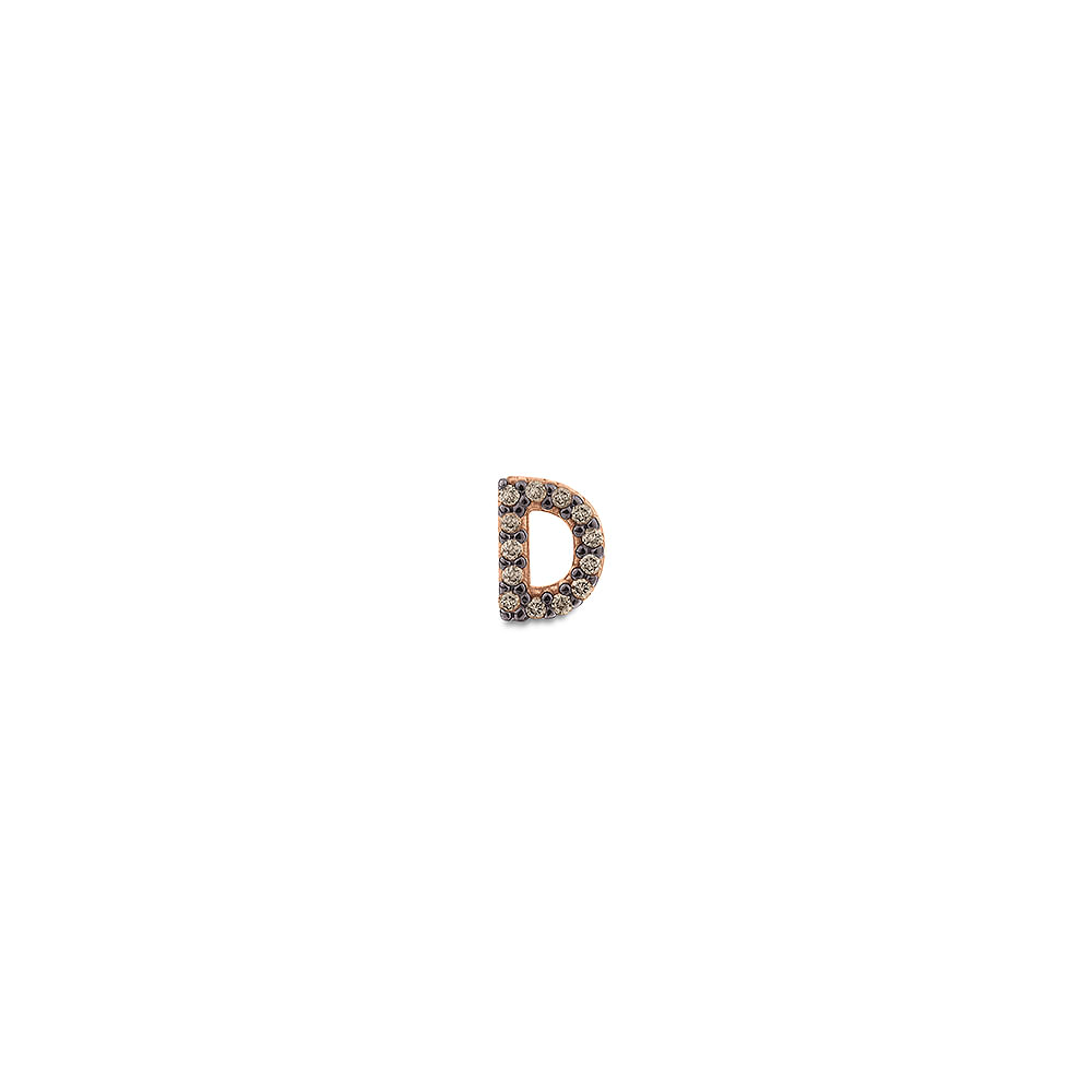 Brinco Único Letra C em Ouro Rosé 18k com Diamantes Brown