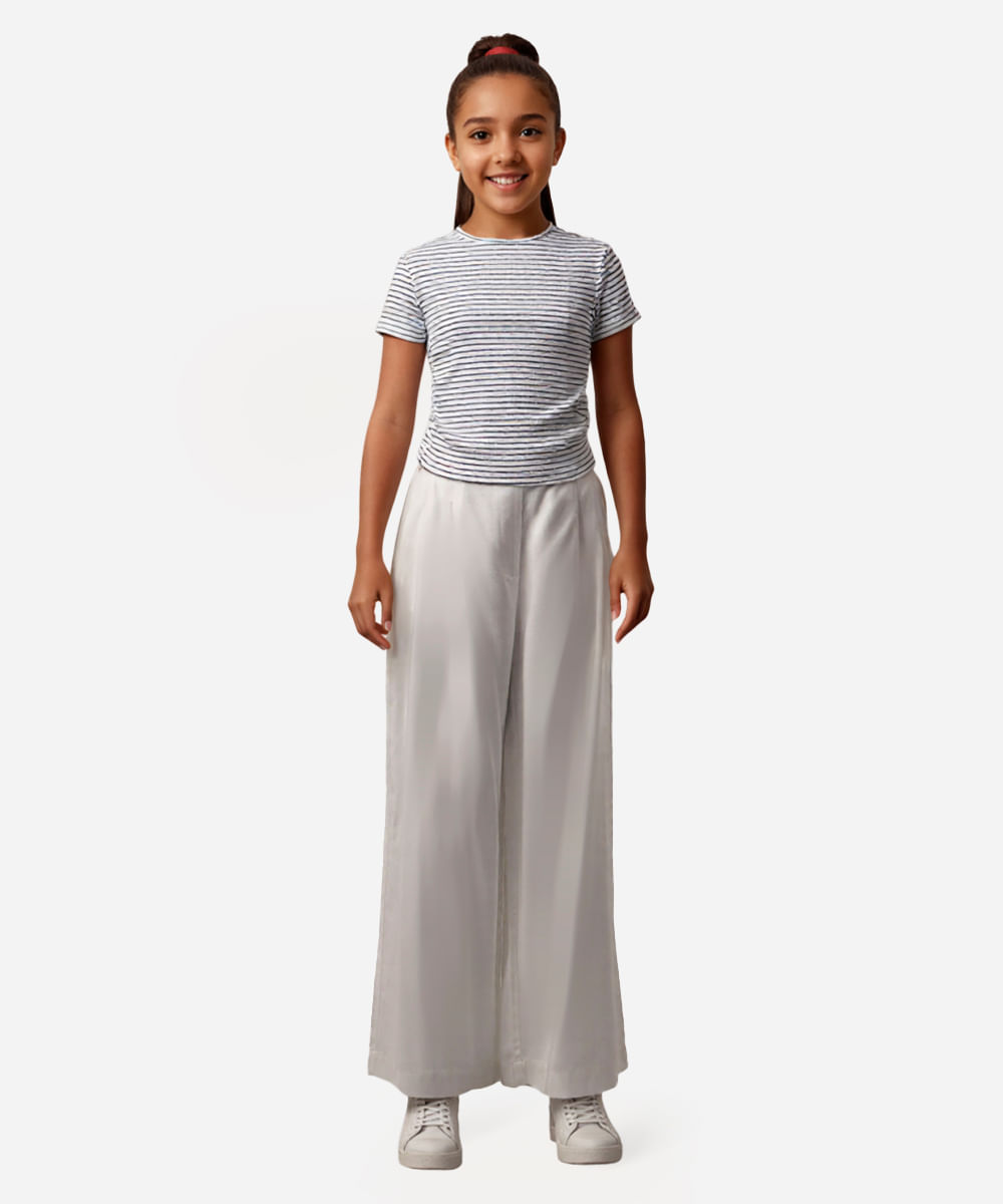camiseta cropped de algodão juvenil com franzido listrada off white