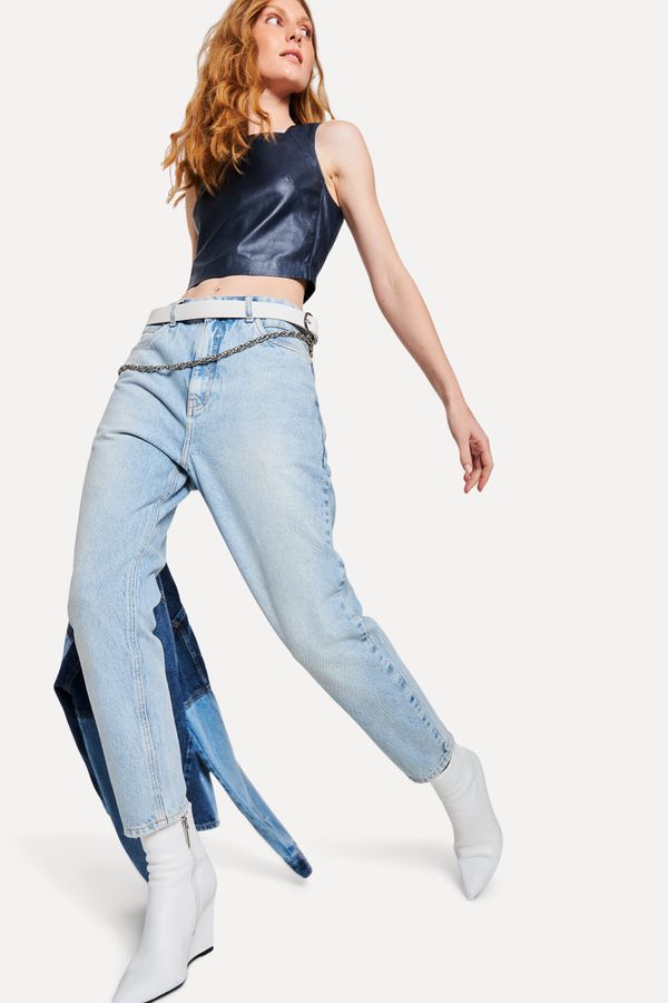 A Calça Jeans Mommy Tina Fit é super confortável e possui gancho levemente deslocado e lavagem exclusiva. Pode ser usada com nossas camisas e camisetas. Compõe looks despojados e modernos. Calça Feminina Reversa produzida eticamente no Brasil. Comprando esta peça, você viabiliza cinco pratos de comida através do nosso programa 1P5P. A modelo mede 1,77 m, 56 cm de cintura e 91 cm de quadril.