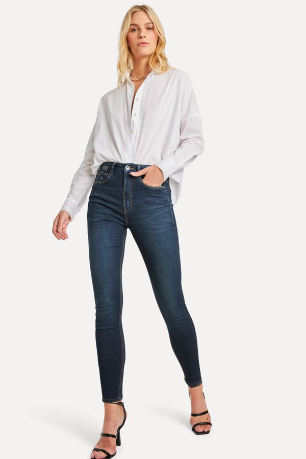 A Calça Jeans Nicky High Skinny é produzida em 100% algodão, o que garante toque macio e conforto para o seu dia a dia. Além disso, a modelagem super ajustada ao corpo e a cintura alta, proporcionam um look moderno e fashion. Calça Feminina Reversa produzida eticamente no Brasil. Comprando esta peça, você viabiliza cinco pratos de comida através do nosso programa 1P5P. A modelo mede 1,81 m, 64 cm de cintura e 89 cm de quadril.