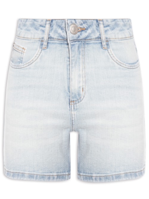 Shorts Feminino Jeans Reto Cintura Alta Com Elastano - Azul
