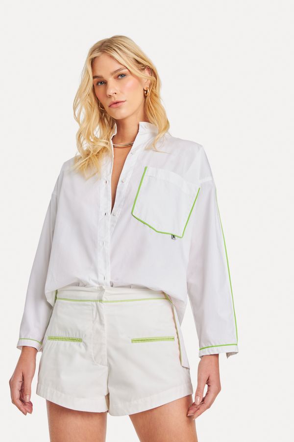 A Camisa Tricoline Vivos possui gola padre, um pouco abaixo do pescoço e combina com diversos tipos de peças em momentos casuais. Camisa Feminina Reversa produzida eticamente no Brasil. Comprando esta peça, você viabiliza cinco pratos de comida através do nosso programa 1P5P. A modelo mede 1,81 m e 83 cm de busto.