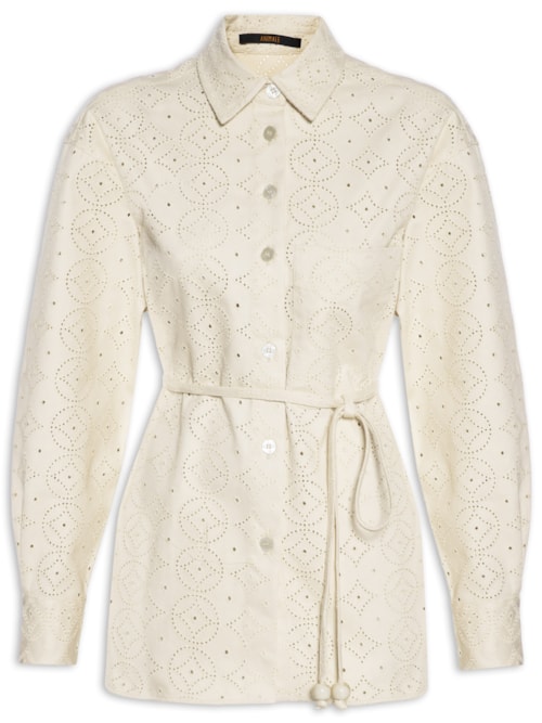 Camisa Feminina Madeira Com Bolso Frontal - Bege