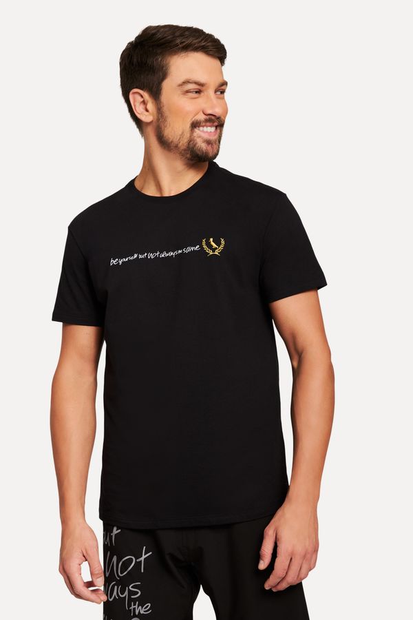 Seja você mesmo! A Camiseta Estampada Golden Reserva é uma homenagem aos 16 anos da nossa marca. Possui o bordado metalizado e exclusivo para esta coleção. Com modelagem regular, decote careca, e feita em 100% algodão, ela garante muito conforto e respirabilidade. Camiseta Reserva produzida eticamente no Brasil. Comprando esta peça, você viabiliza cinco pratos de comida através do nosso programa 1P5P.