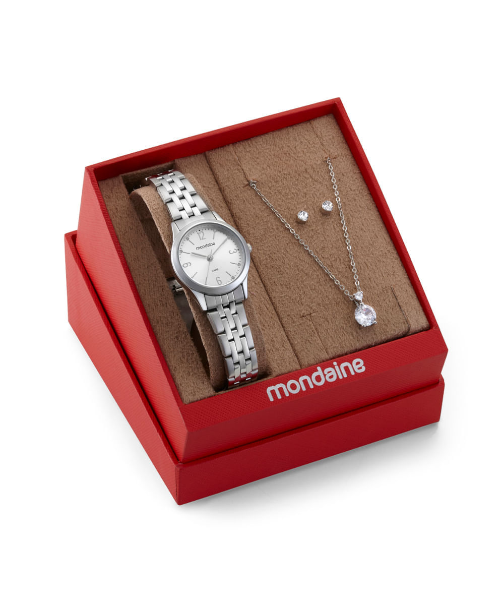 kit relógio feminino mondaine analógico 32720l0mkne2k1 prateado