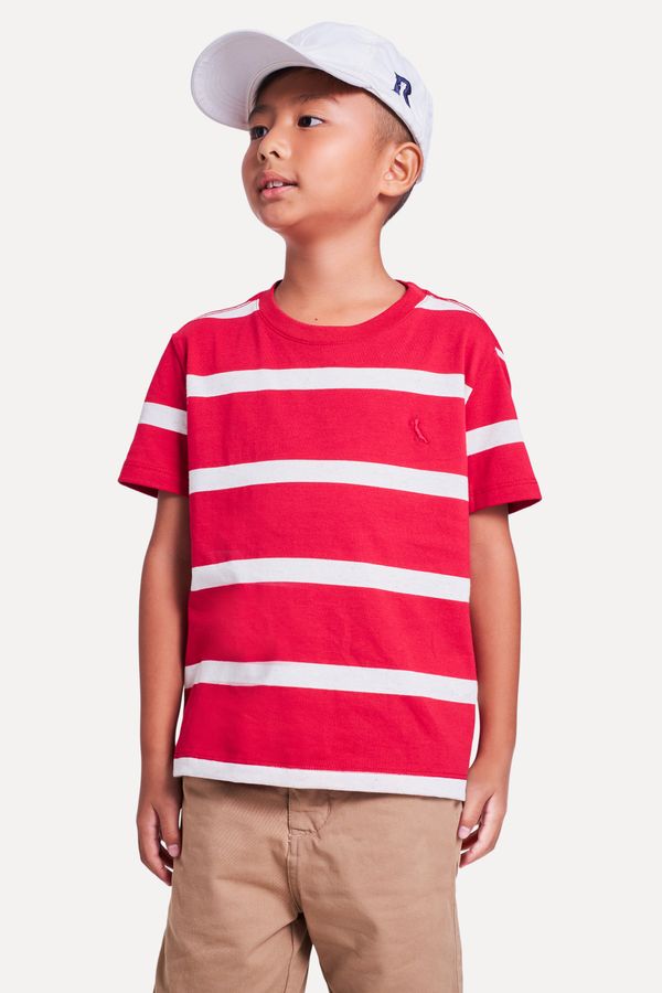Camiseta da linha infantil Reserva Mini. A peça em malha fio tinto tem listras largas e coloridas com as cores do verão. Possui bordado do pica-pau em tom contrastante. Perfeita para incrementar partes de baixo básicas! Produzido eticamente no Brasil. Comprando esta peça, você viabiliza cinco pratos de comida através do nosso programa 1P5P.