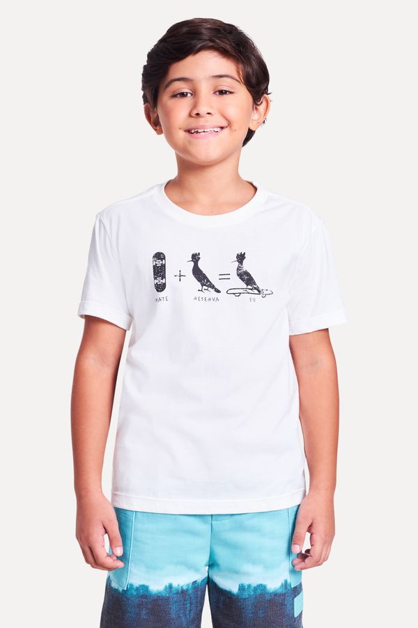 Camiseta da linha infantil Reserva Mini. O modelo básico em malha 100% algodão tem decote careca com gola de ribana e estampa exclusiva. Para os pequenos que adoram andar de skate! Produzido eticamente no Brasil. Comprando esta peça, você complementa cinco pratos de comida através do nosso programa 1P=5P.