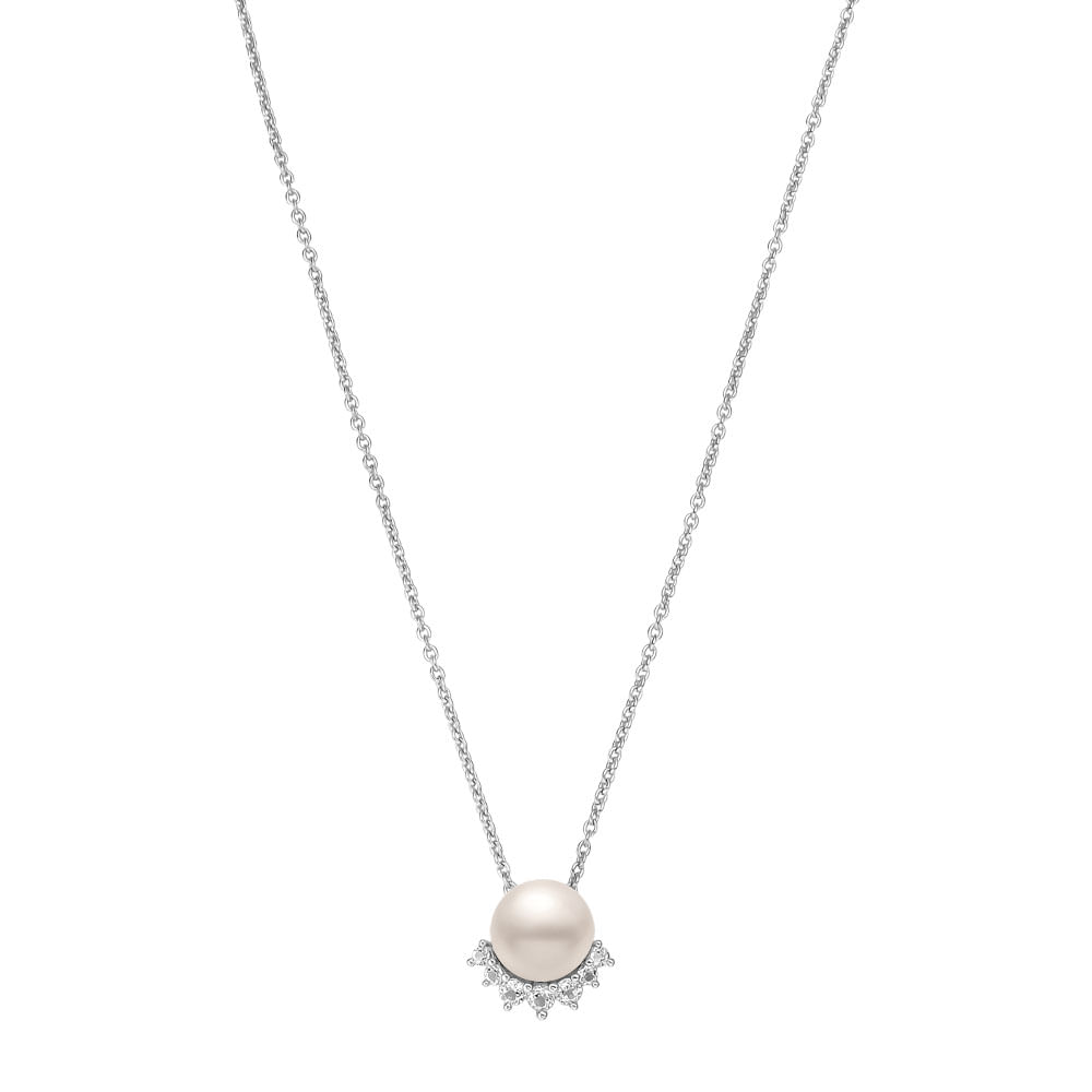 Colar em Prata 925 com Pérola e Topázios Incolores, 45cm