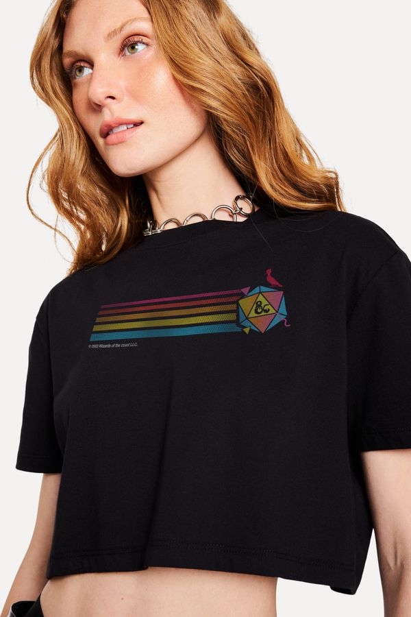 A Cropped D&D Dice é fruto da colabe entre Reserva e Dungeons & Dragons. Com estampa nostálgica e exclusiva, vinda diretamente do Reino, esta peça é confeccionada em 100% algodão, que garante conforto e respirabilidade pra vários momentos. Feita especialmente pra quem cresceu querendo saber o fim de uma incrível aventura! Camiseta produzida eticamente no Brasil. Comprando esta peça, você complementa cinco pratos de comida através do nosso programa 1P5P.