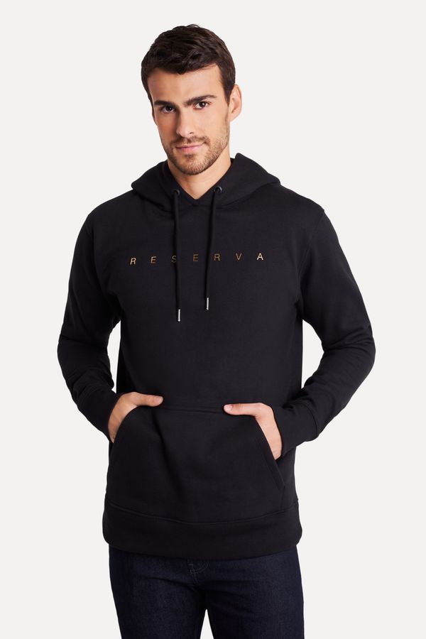Um básico de presença. Esse é o Hoodie Moletom Reserva Golden. O casaco possui modelagem casual, com bolso canguru e capuz ajustável pra te proteger por inteiro nos dias mais frios. O silk frontal com tipografia dourada é um diferencial pra quem ama um clássico repaginado. Seu tecido encorpado aquece e traz um conforto especial de domingo pra todos os dias da semana, e quando combinado com a Calça Casual Flex, que possui caimento ajustado ao corpo e modelagem de alfaiataria, você garante um look coringa e relax pros eventos sociais do dia a dia. Produzido eticamente no Brasil. Comprando esta peça, você viabiliza 5 pratos de comida através do nosso Programa 1P5P. O modelo desta foto tem 1,85m de altura e 75kg.