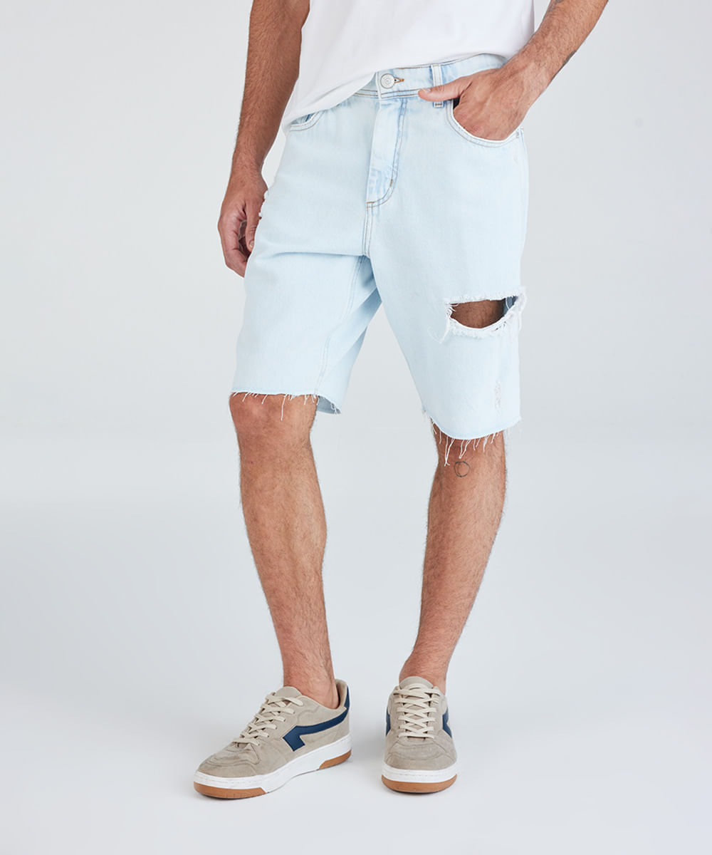 bermuda slim masculina jeans destroyed azul
