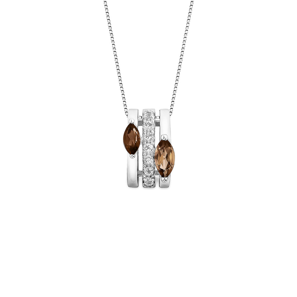 Pingente Glee em Prata 925 com Quartzos Fumê e Topázios Incolores, 10mm