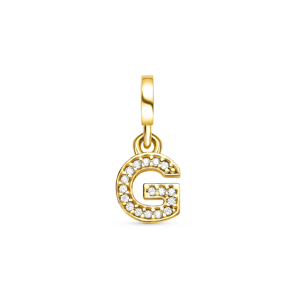 Pingente Life Letra H em Prata 925 com Banho de Ouro Amarelo 18k e Pedras Incolores