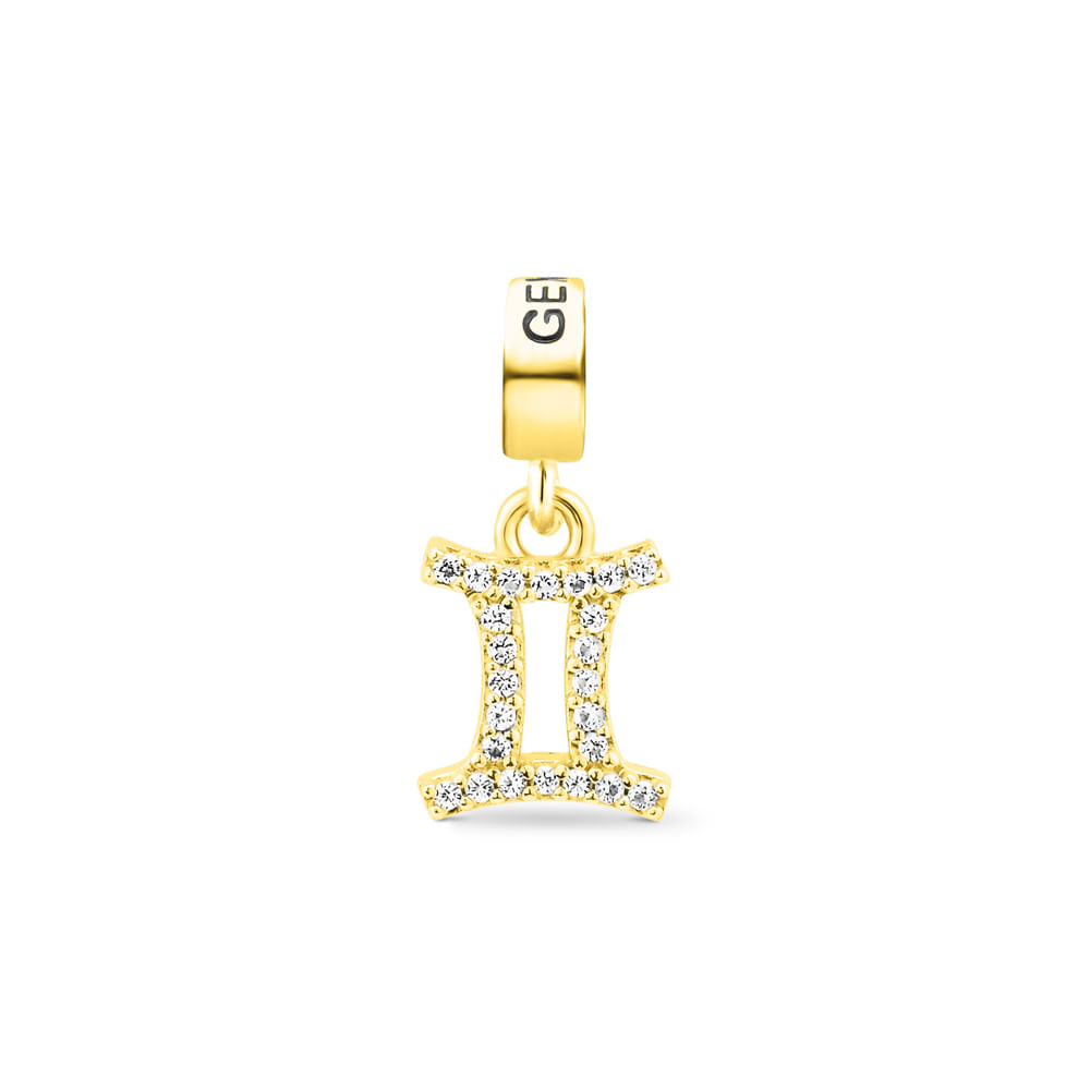 Pingente Life Signo Sagitário em Prata 925 com Banho de Ouro Amarelo 18k e Pedras Incolores