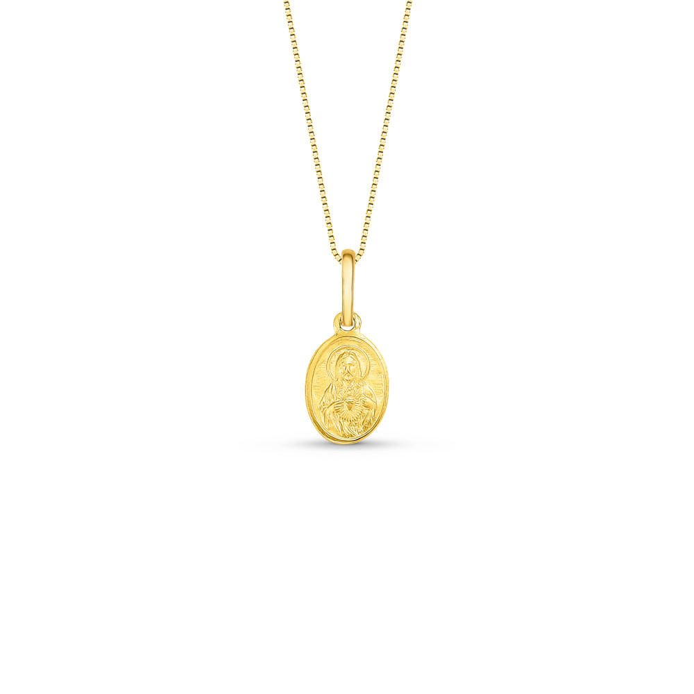 Pingente Medalha Sagrado Coração de Jesus em Ouro Amarelo 18k, 13mm