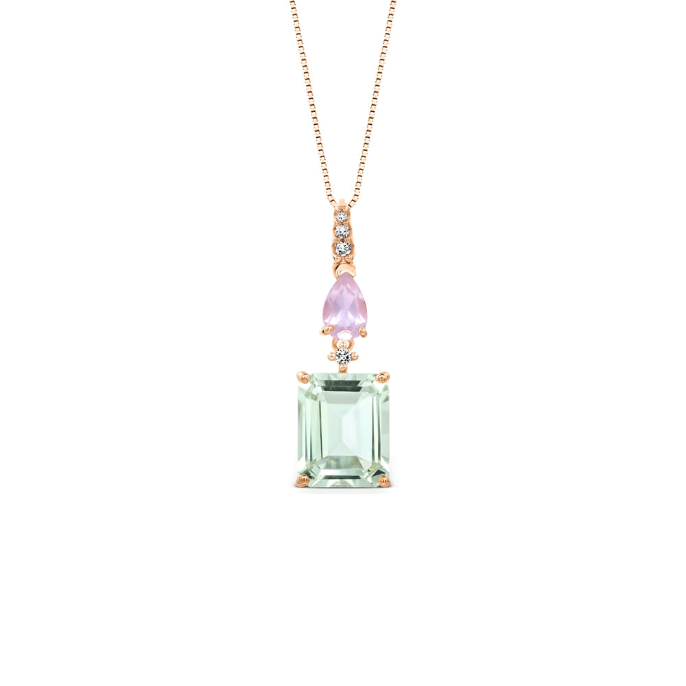 Pingente Reali em Ouro Rosé 18k com Prasiolita, Quartzo Rosa e Diamantes, 25mm