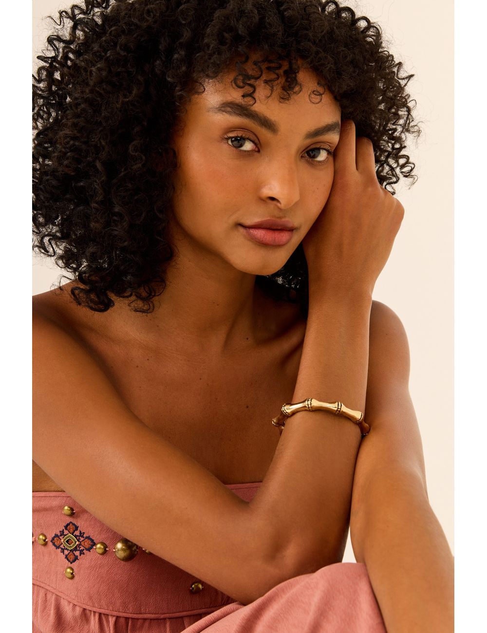 Ir Para LojaA Pulseira Antique Bamboo é um acessório que traduz elegância em sua forma mais simples. Com design inspirado nas linhas orgânicas do bambu, ela é a escolha perfeita para quem busca um toque refinado e versátil em suas produções. Feita em metal dourado, essa peça é ideal para completar qualquer look com um detalhe único, equilibrando sofisticação e contemporaneidade de maneira sutil e marcante. - Design exclusivo inspirado no bambu. - Acabamento refinado. - Peça atemporal e versátil. - Combine a pulseira com outros acessórios dourados para um look harmonioso e sofisticado.