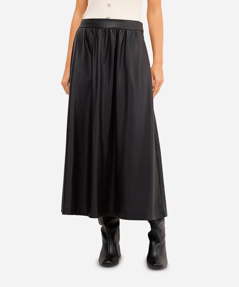 saia midi feminina de poliuretano preta