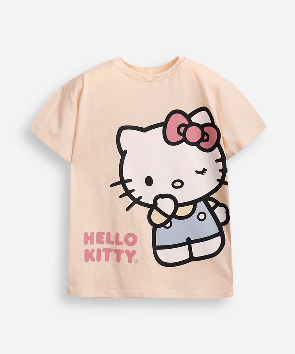 camiseta de algodão infantil lovely hello kitty bege