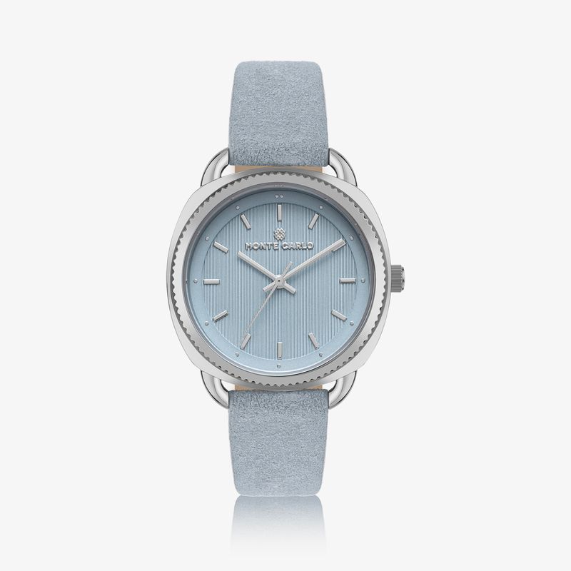 Relógio Monte Carlo Feminino em Aço Prateado e Pulseira de Suede