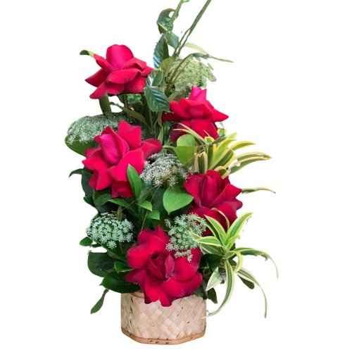 DESCRIÇÃO:Arranjo floral exuberante que combina elegância das Rosas vermelhas importadas com a delicadeza dos Lírios amarelos e a sofisticação dos galhos de Orquídeas. As Rosas adicionam uma pitada de paixão e romance, enquanto os Lírios trazem um toque de luminosidade e alegria. Os galhos de Orquídea acrescentam uma textura única e uma sensação de exotismo, completando perfeitamente a composição. COMPOSIÇÃO:- 1 Cachepô em vidro - 1 Arranjo floral- 1 Embalagem para presente DETALHES:PERSONALIZE SEU PRESENTEApós selecionar a data e período de entrega você poderá escolher os melhores complementos para o seu presente como pelúcias, chocolates, bebidas entre outros itens para deixar o seu presente ainda mais perfeito. CARTÃO:É possível incluir uma mensagem junto ao seu presente! Prossiga com a compra e na tela de "ENTREGA" basta escolher o cartão e escrever a mensagem. Caso queira enviar em Anônimo, escolha a opção "NÃO QUERO CARTÃO". ENTREGA E FRETE:Para consultar o prazo e valor de entrega, preencha o CEP de entrega, clique em OK e verifique as opções disponíveis. Caso queira acompanhar a entrega do seu presente, informe o seu número do celular. IMPORTANTENós trabalhamos com lojas parceiras por todo o Brasil que possuem treinamento, experiência e materiais para manter a qualidade exigida.Porém, devido às características de cada local, variações naturais das flores e outras interferências, os produtos podem sofrer alterações.As imagens exibidas são meramente ilustrativas ESPECIFICAÇÕES:Dimensões aproximadas: Largura: 12cm x Altura 55cm x Profundidade 12cmPeso aproximado: 0,500g